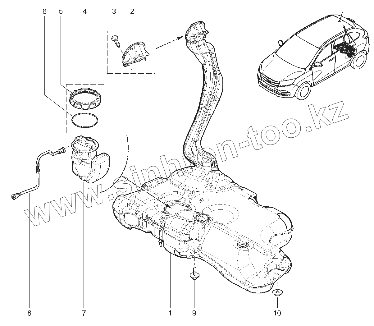 Каталог запасных частей к технике: ВАЗ LADA XRAY. 193110. БАК ТОПЛИВНЫЙ В СБОРЕ