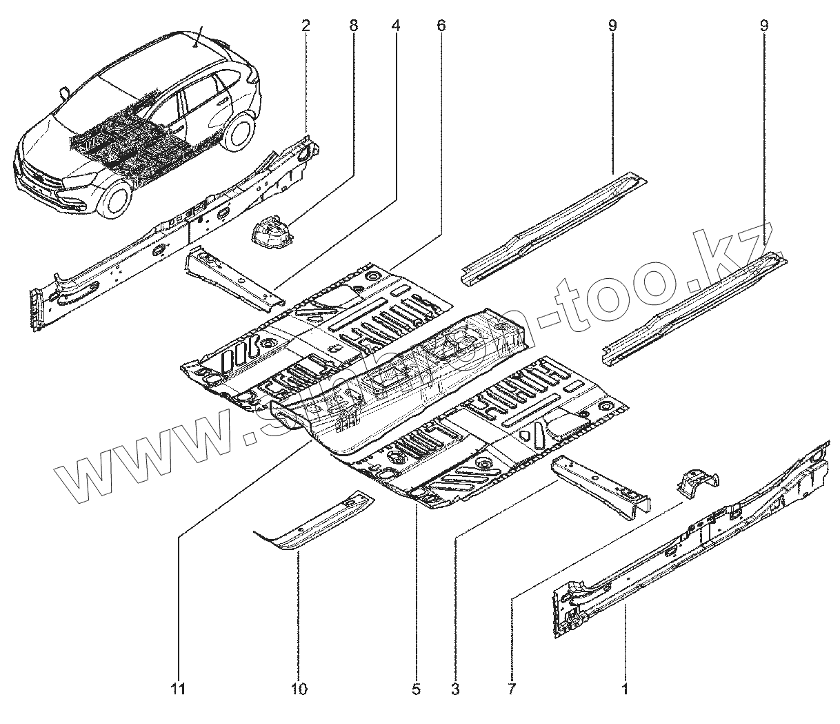 Каталог запасных частей к технике: ВАЗ LADA XRAY. 412010. ЭЛЕМЕНТЫ НИЖНИЕ СРЕДНИЕ