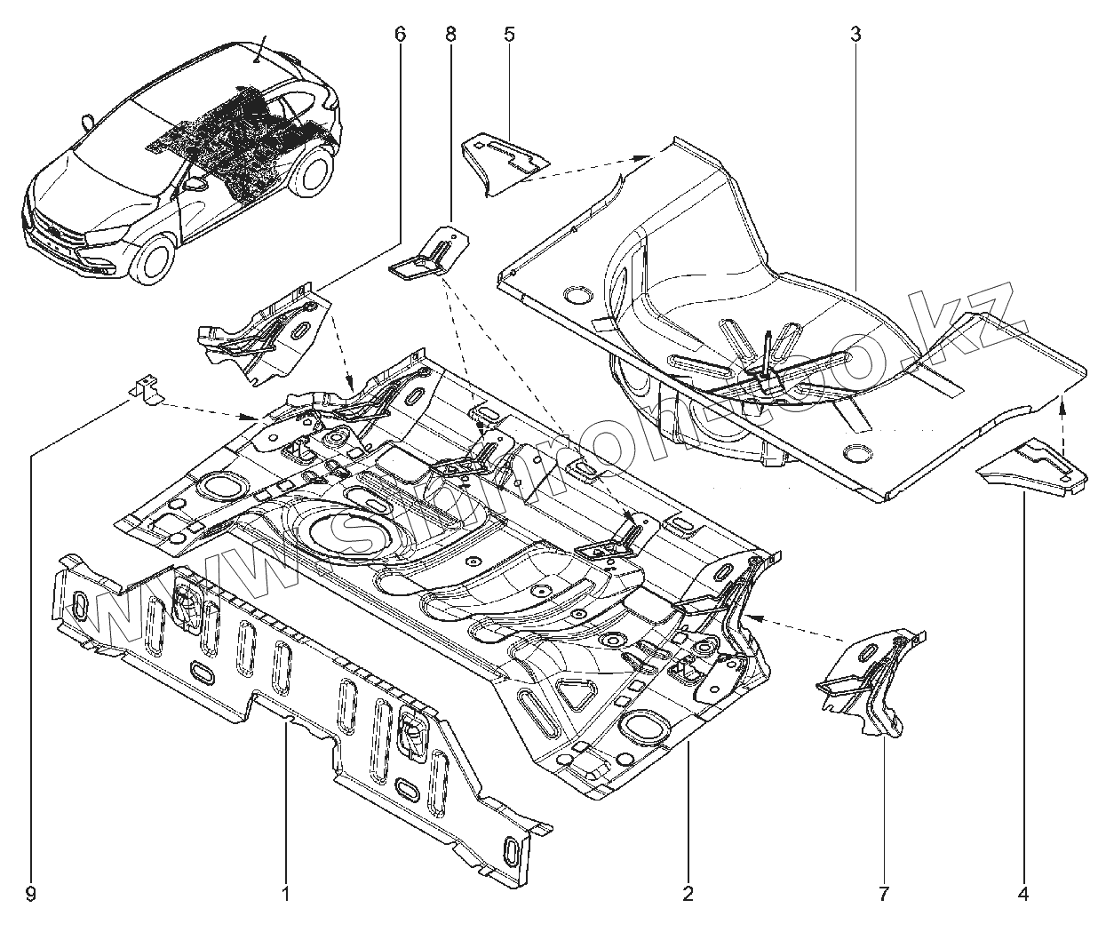 Каталог запасных частей к технике: ВАЗ LADA XRAY. 413010. ЭЛЕМЕНТЫ НИЖНИЕ ЗАДНИЕ