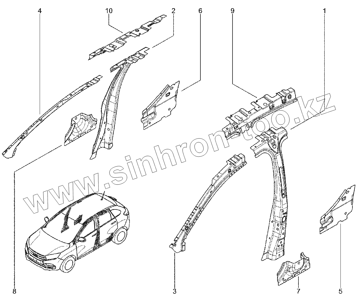 Каталог запасных частей к технике: ВАЗ LADA XRAY. 431010. ЭЛЕМЕНТЫ БОКОВИН КУЗОВА