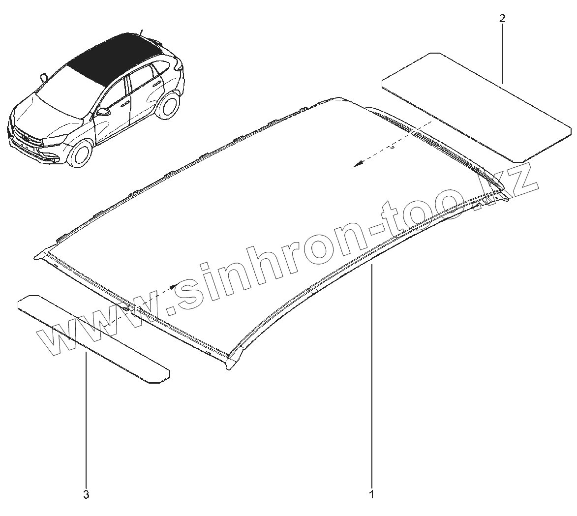 Каталог запасных частей к технике: ВАЗ LADA XRAY. 450110. ПАНЕЛЬ КРЫШИ