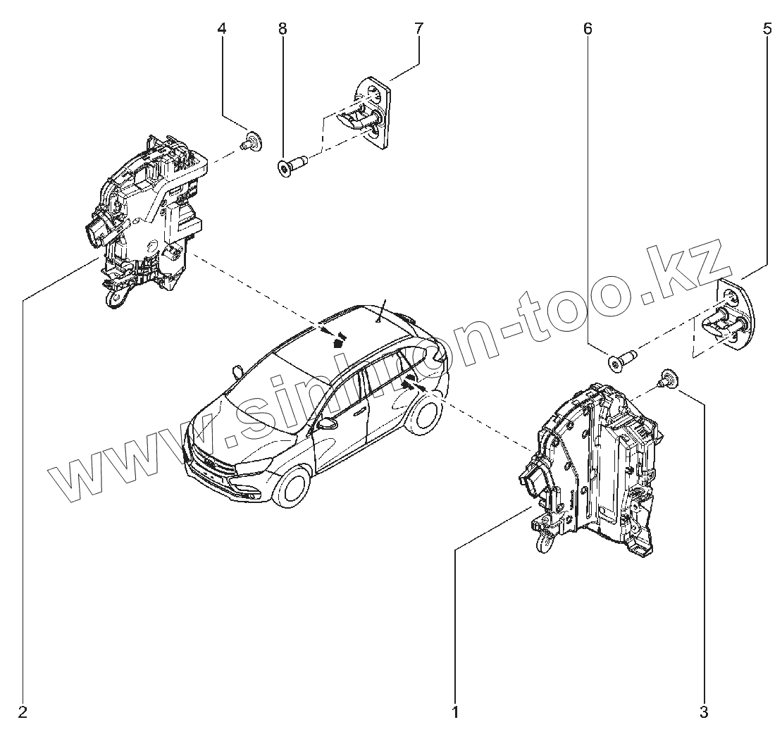 Каталог запасных частей к технике: ВАЗ LADA XRAY. 502010. ЗАМКИ ЗАДНИХ ДВЕРЕЙ