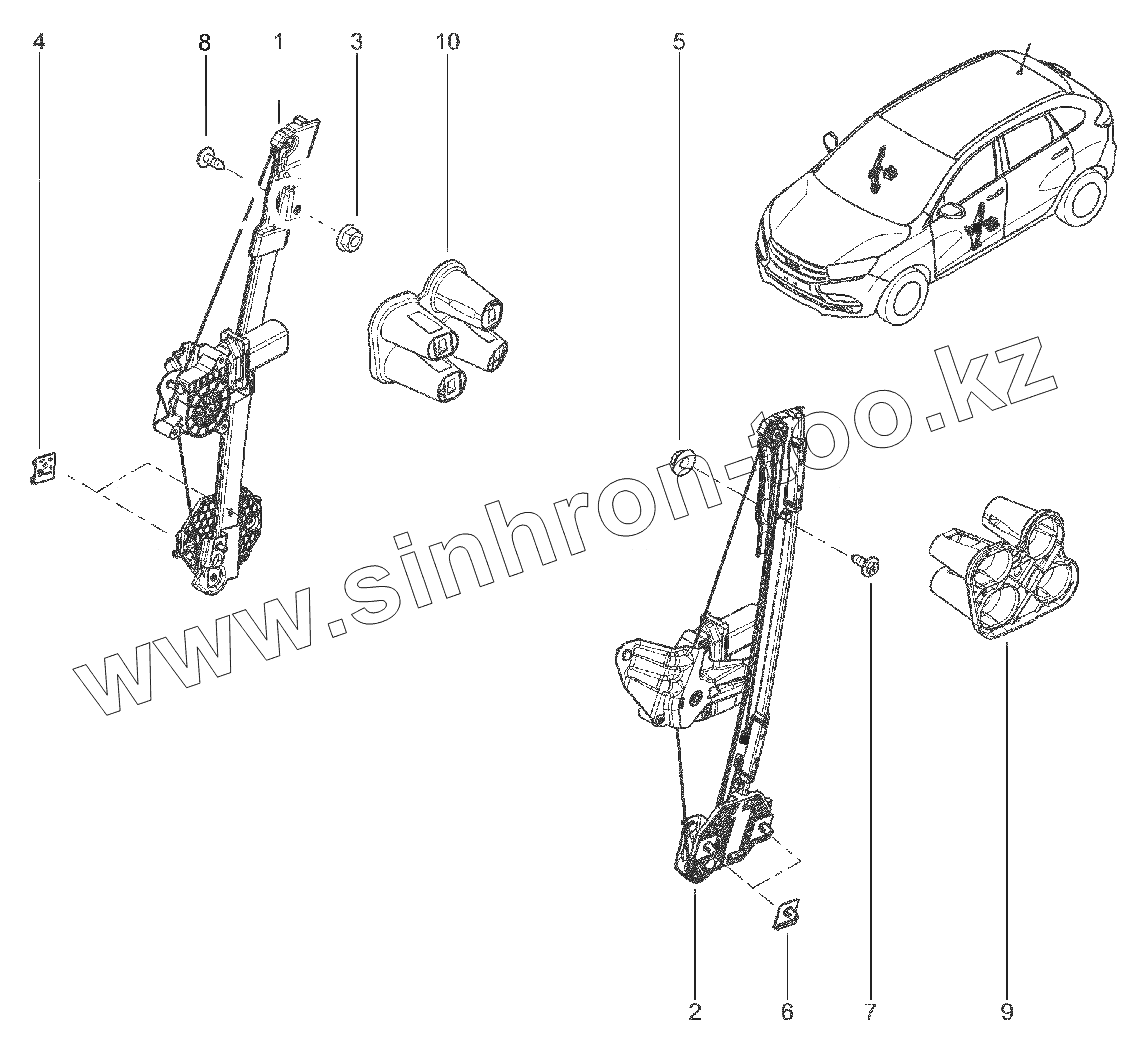 Каталог запасных частей к технике: ВАЗ LADA XRAY. 506510. ЭЛЕКТР. СТЕКЛОПОДЪЕМНИКИ ПЕРЕДНИХ ДВЕРЕЙ