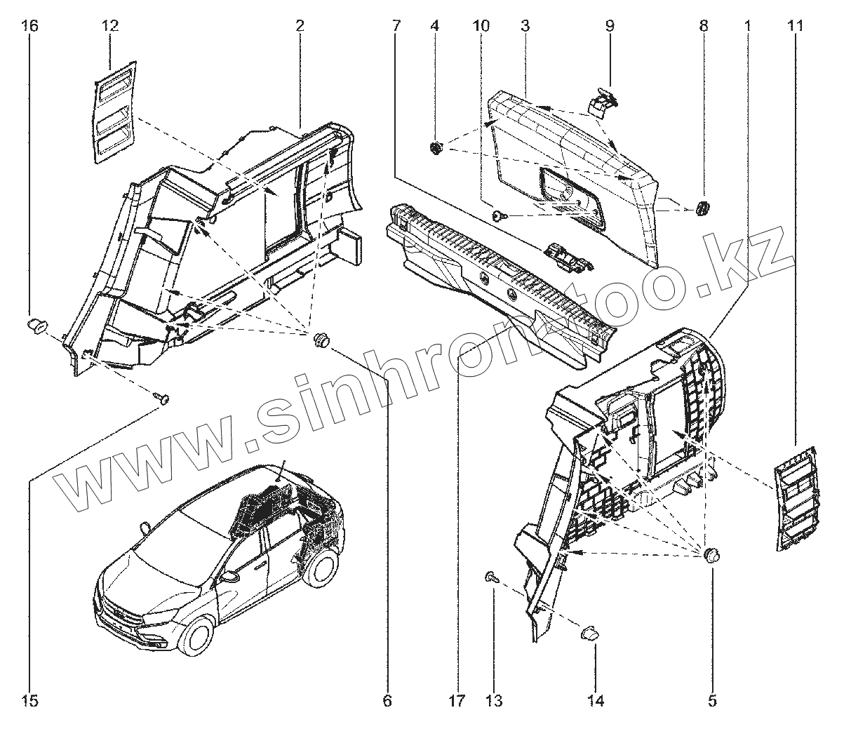 Каталог запасных частей к технике: ВАЗ LADA XRAY. 710510. ОБИВКА БАГАЖНИКА
