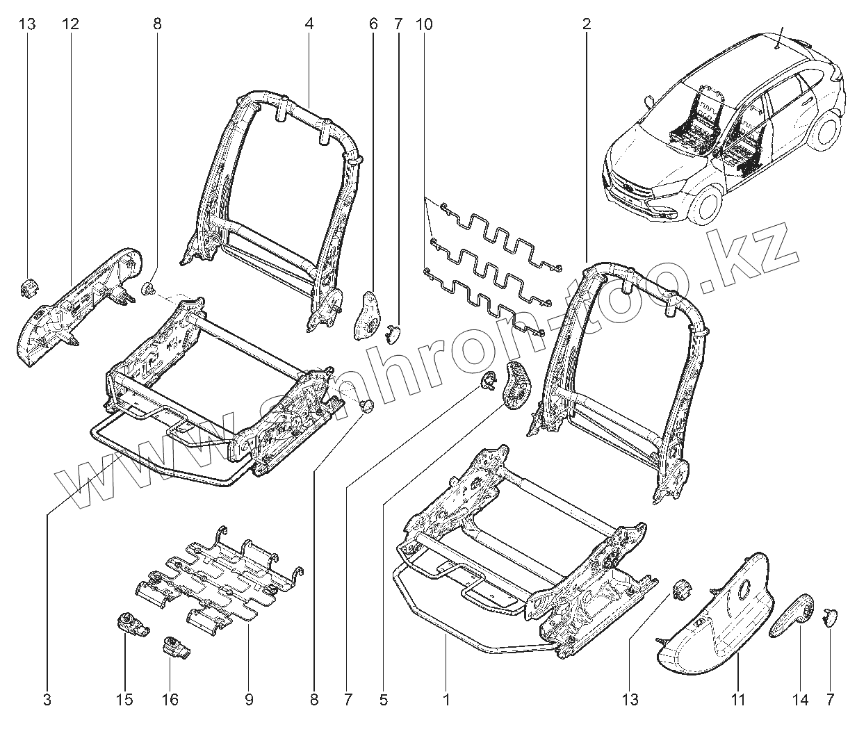 Каталог запасных частей к технике: ВАЗ LADA XRAY. 770210. КАРКАС ПЕРЕДНИХ СИДЕНИЙ Е0 OPTIMA