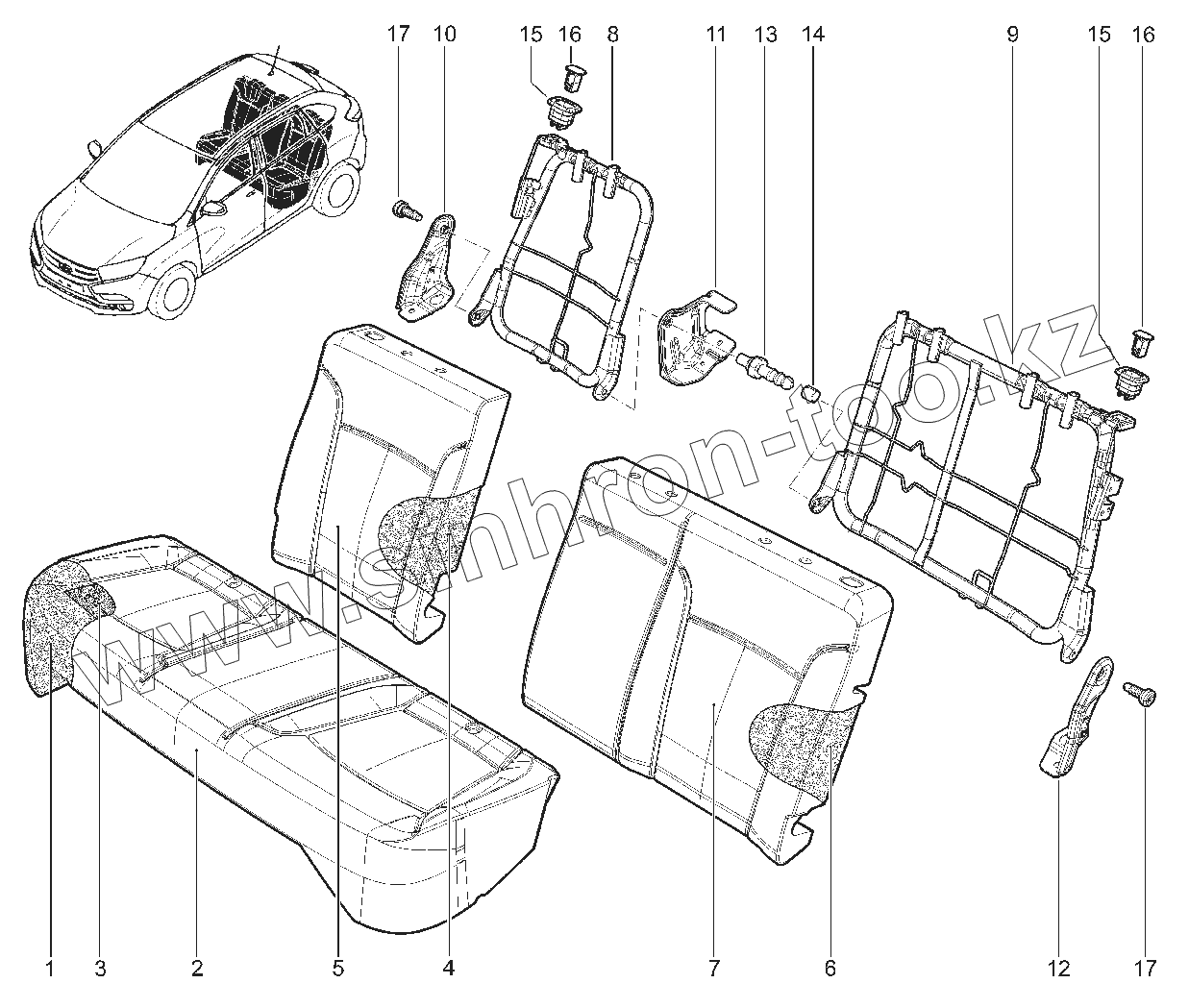 Каталог запасных частей к технике: ВАЗ LADA XRAY. 780210. КАРКАС ЗАДНИХ СИДЕНИЙ