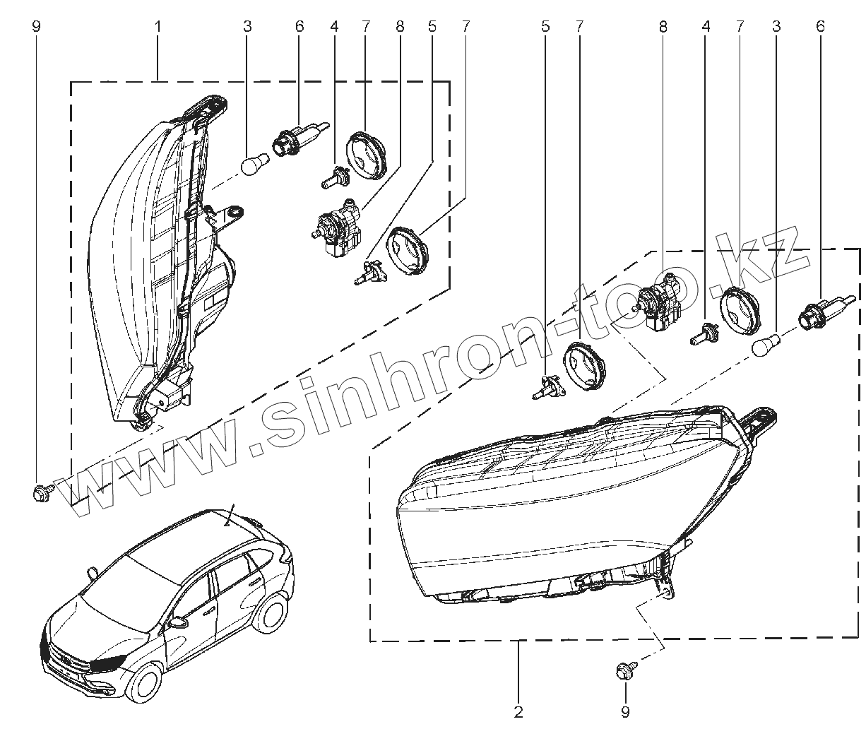 Каталог запасных частей к технике: ВАЗ LADA XRAY. 802010. ФАРЫ ПЕРЕДНИЕ
