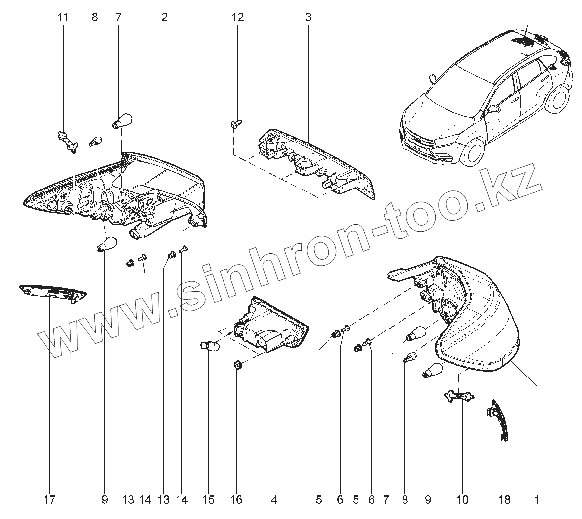 Каталог запасных частей к технике: ВАЗ LADA XRAY. 811010. ФОНАРИ ЗАДНИЕ