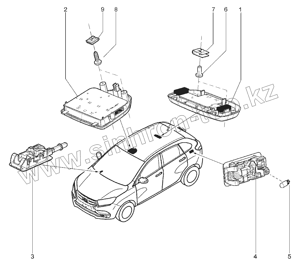 Каталог запасных частей к технике: ВАЗ LADA XRAY. 814010. ПЛАФОНЫ ОСВЕЩЕНИЯ