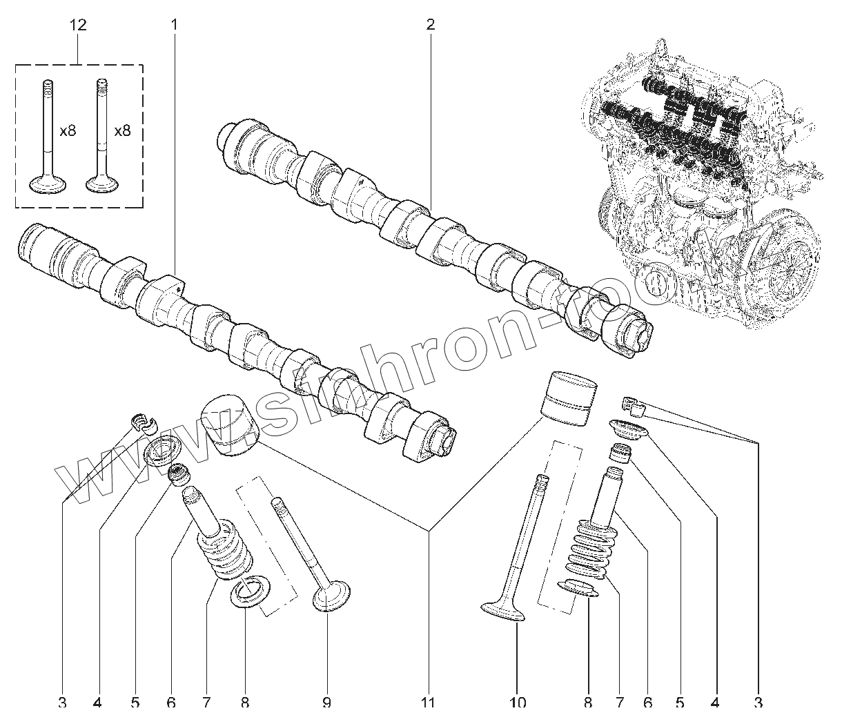 114611. РАСПРЕДВАЛЫ, КЛАПАНЫ (16клап)