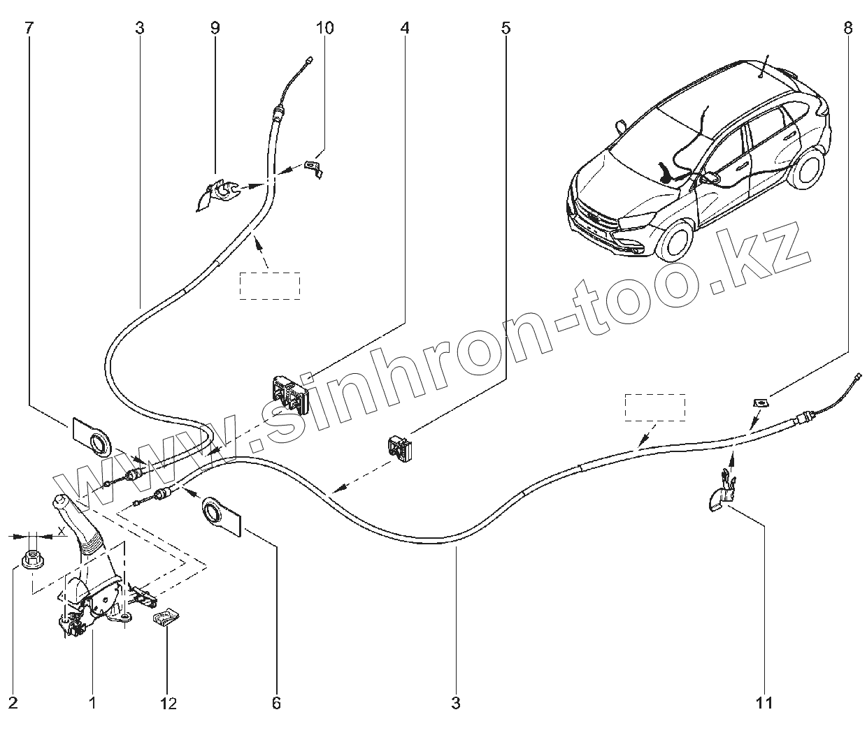 Каталог запасных частей к технике: ВАЗ LADA XRAY Cross. 380110. МЕХАНИЗМ СТОЯНОЧНОГО ТОРМОЗА