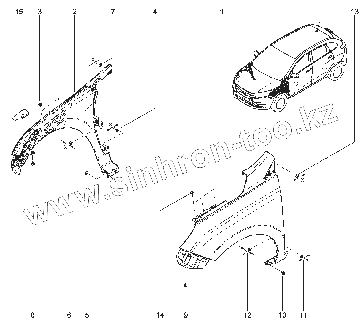 Каталог запасных частей к технике: ВАЗ LADA XRAY Cross. 460010. КРЫЛЬЯ ПЕРЕДНИЕ