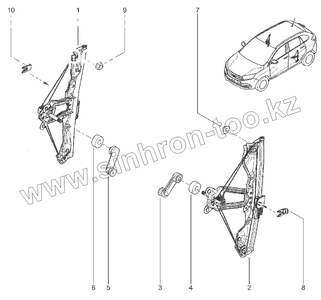 Каталог запасных частей к технике: ВАЗ LADA XRAY Cross. 507010. СТЕКЛОПОДЪЕМНИКИ ЗАДНИХ ДВЕРЕЙ