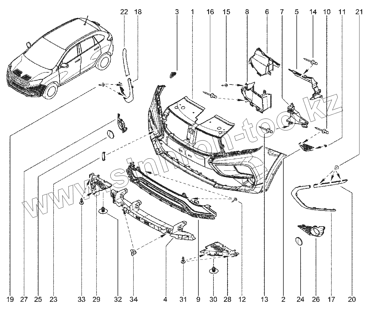 Каталог запасных частей к технике: ВАЗ LADA XRAY Cross. 550110. БАМПЕР ПЕРЕДНИЙ