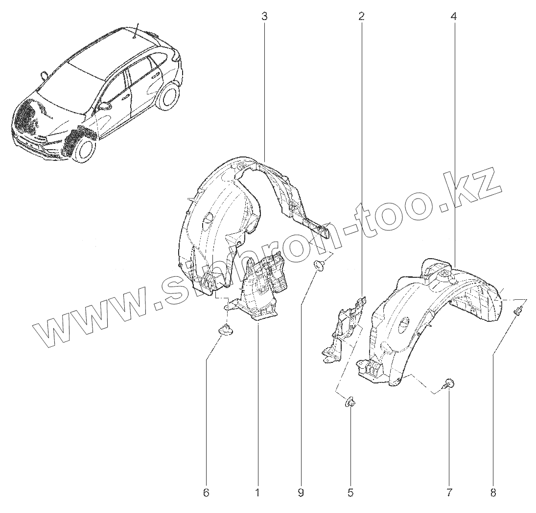 Каталог запасных частей к технике: ВАЗ LADA XRAY Cross. 564011. ФАРТУК ПЕРЕДНЕГО КОЛЕСА