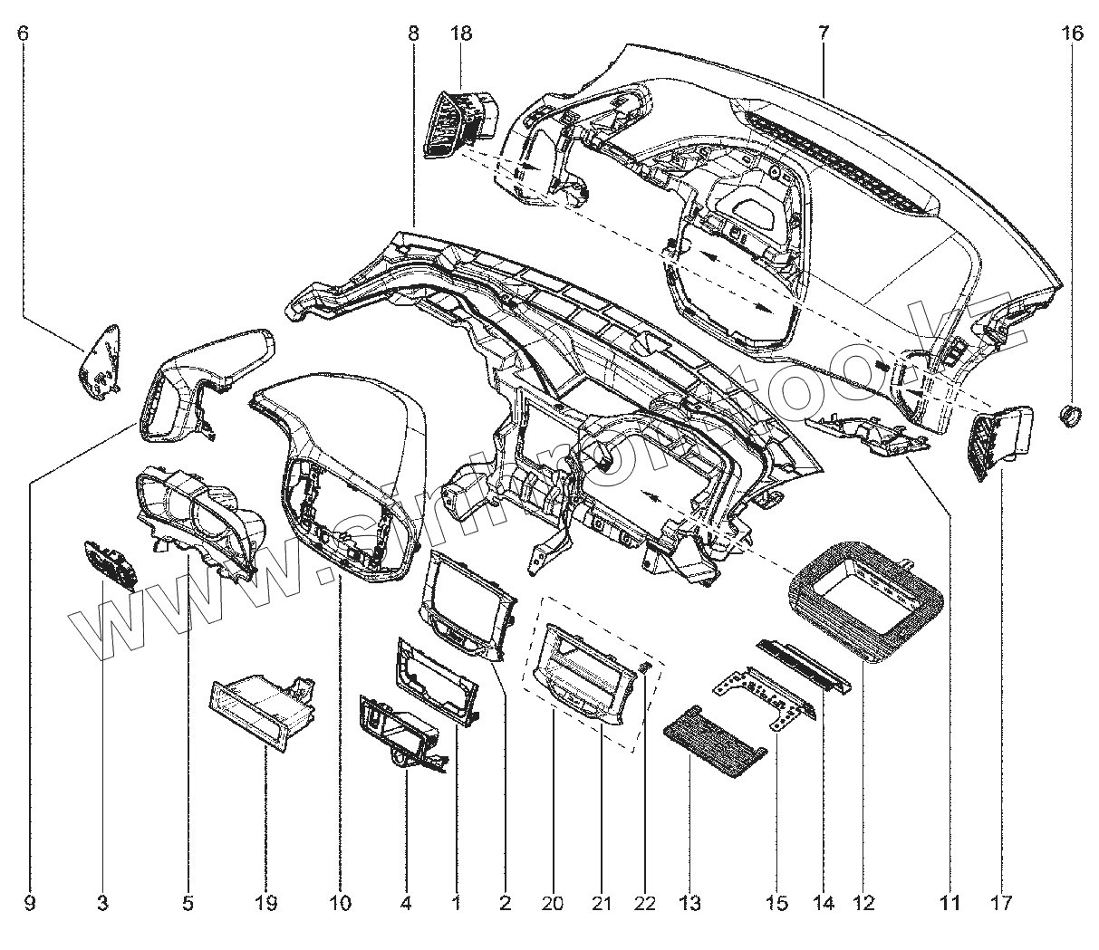 Каталог запасных частей к технике: ВАЗ LADA XRAY Cross. 572110. ОБЛИЦОВКА ПАНЕЛИ ПРИБОРОВ