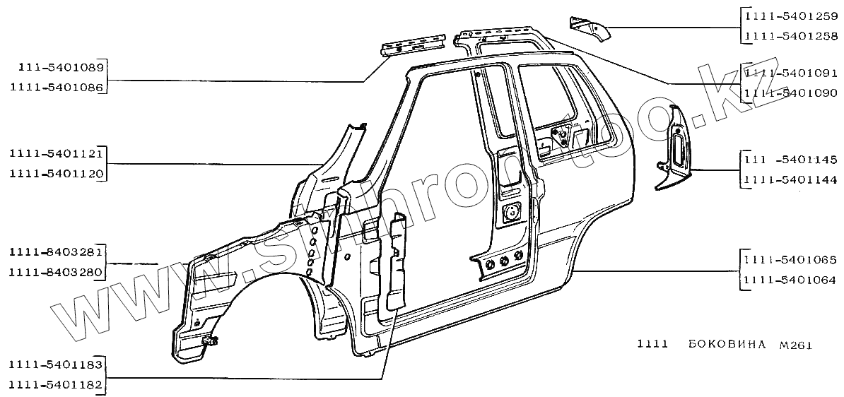 Каталог запасных частей к технике: ВАЗ-1111 "ОКА". Боковина
