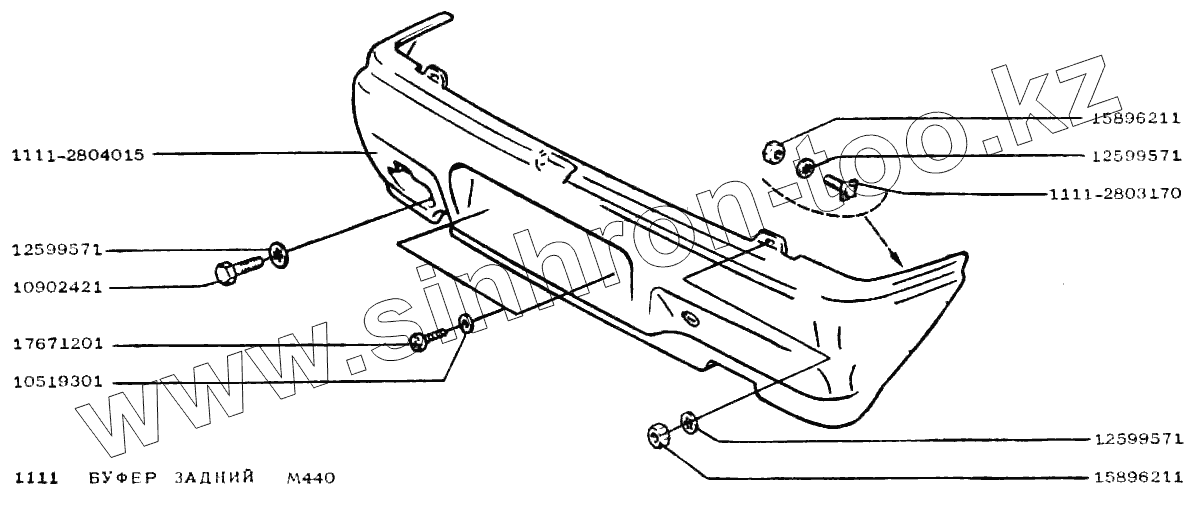 Каталог запасных частей к технике: ВАЗ-1111 "ОКА". Буфер задний