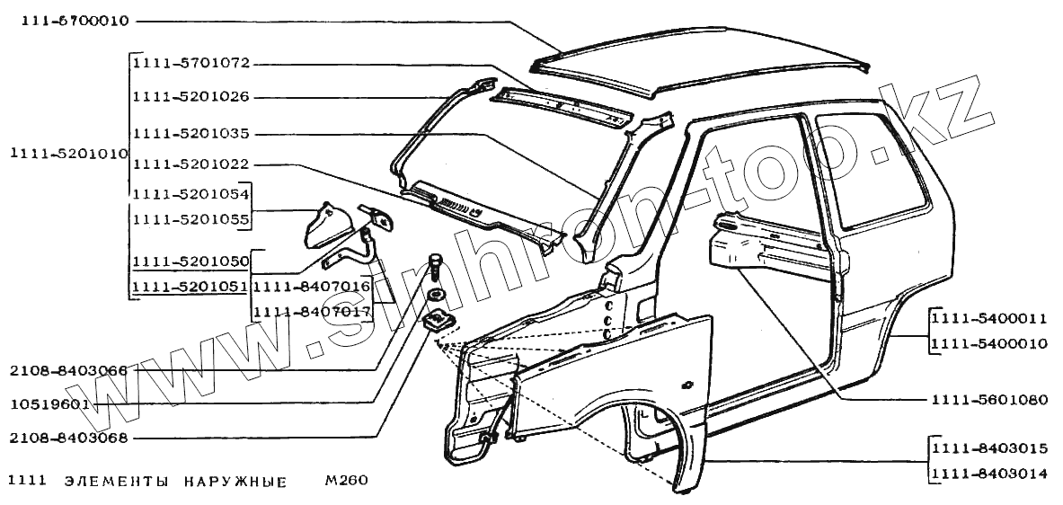Каталог запасных частей к технике: ВАЗ-1111 "ОКА". Элементы наружные