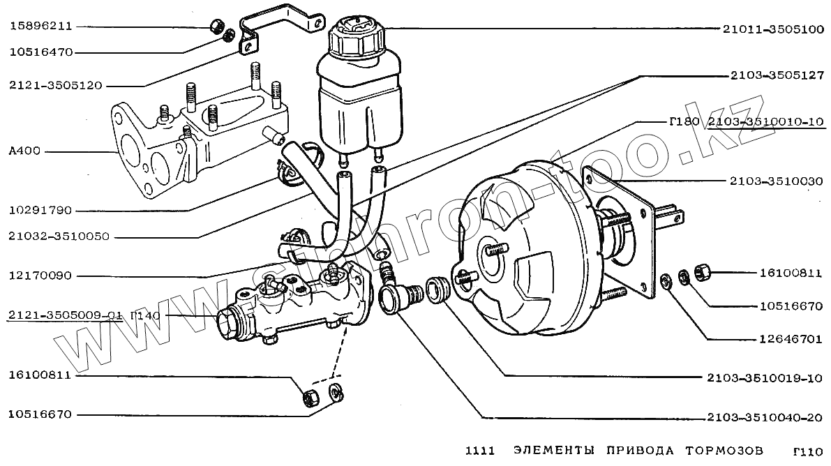 Каталог запасных частей к технике: ВАЗ-1111 "ОКА". Элементы привода тормозов