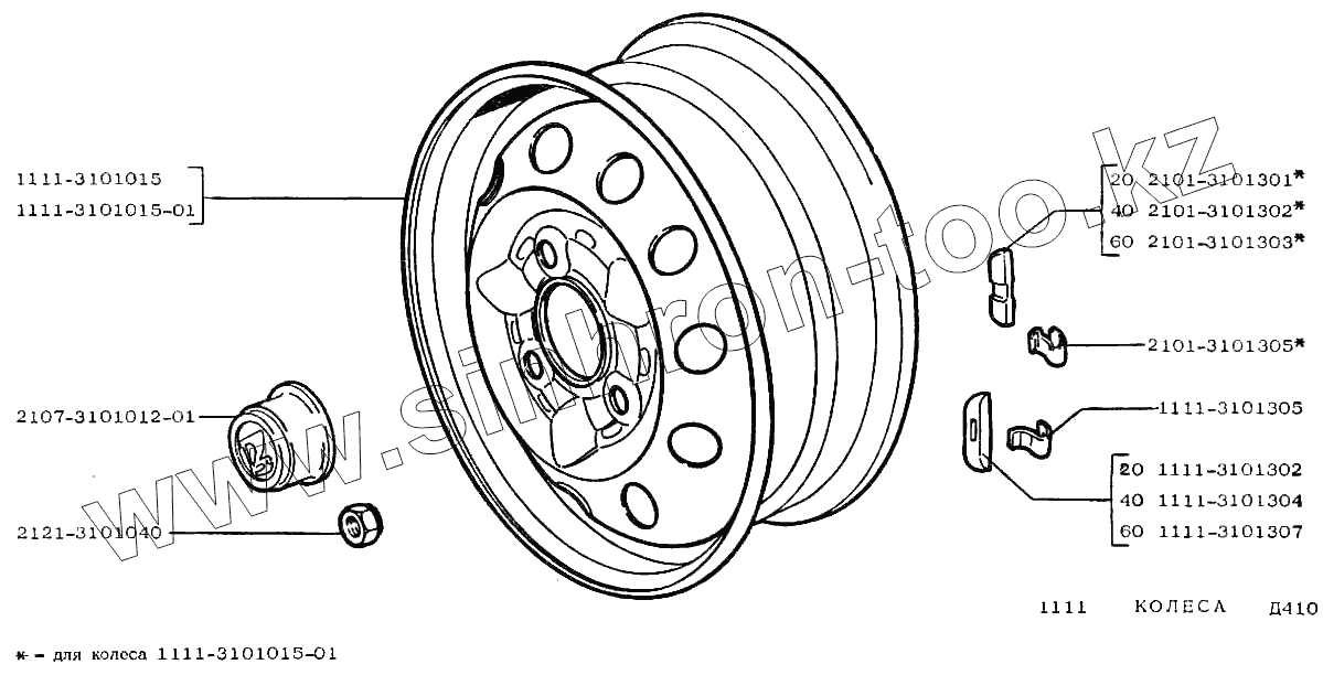 Каталог запасных частей к технике: ВАЗ-1111 "ОКА". Колеса