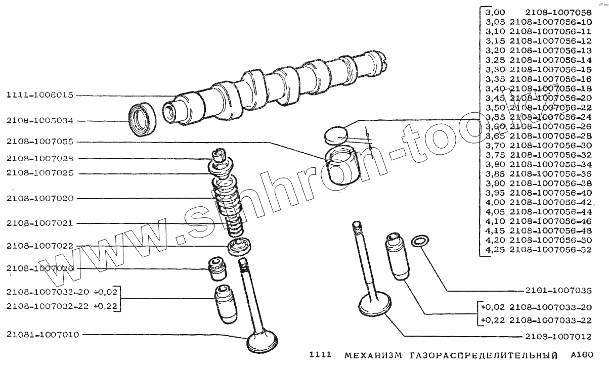 Каталог запасных частей к технике: ВАЗ-1111 "ОКА". Механизм газораспределительный