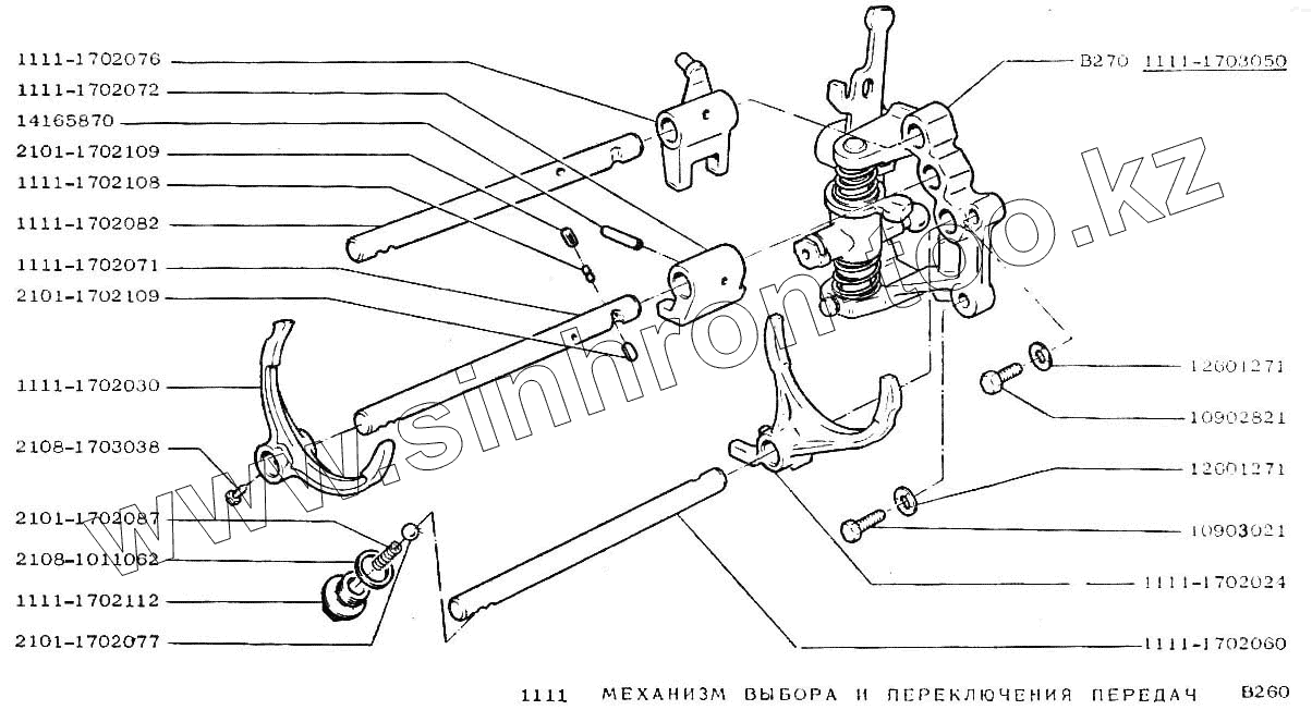 Каталог запасных частей к технике: ВАЗ-1111 "ОКА". Механизм выбора и переключения передач