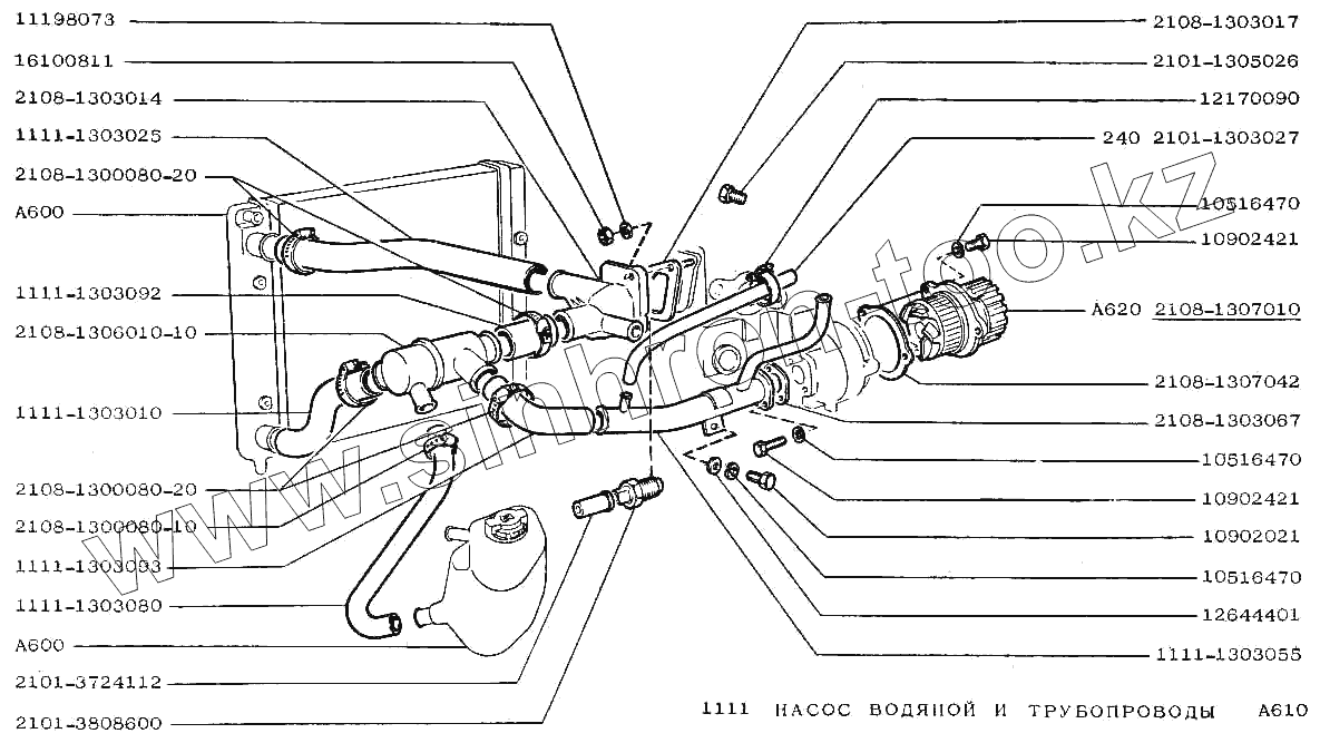 Каталог запасных частей к технике: ВАЗ-1111 "ОКА". Насос водяной и трубопроводы
