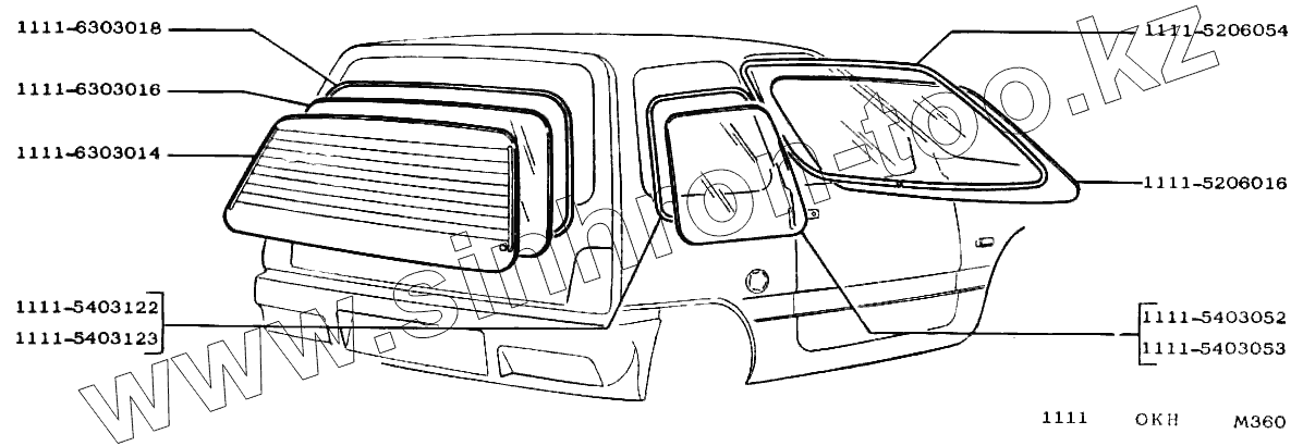 Каталог запасных частей к технике: ВАЗ-1111 "ОКА". Окна