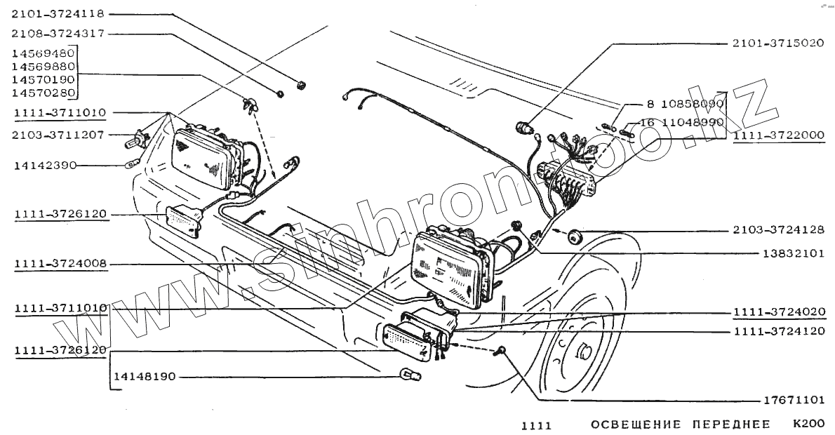 Каталог запасных частей к технике: ВАЗ-1111 "ОКА". Освещение переднее