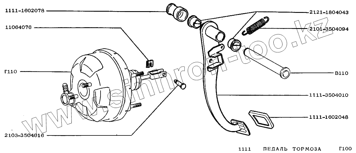Каталог запасных частей к технике: ВАЗ-1111 "ОКА". Педаль тормоза