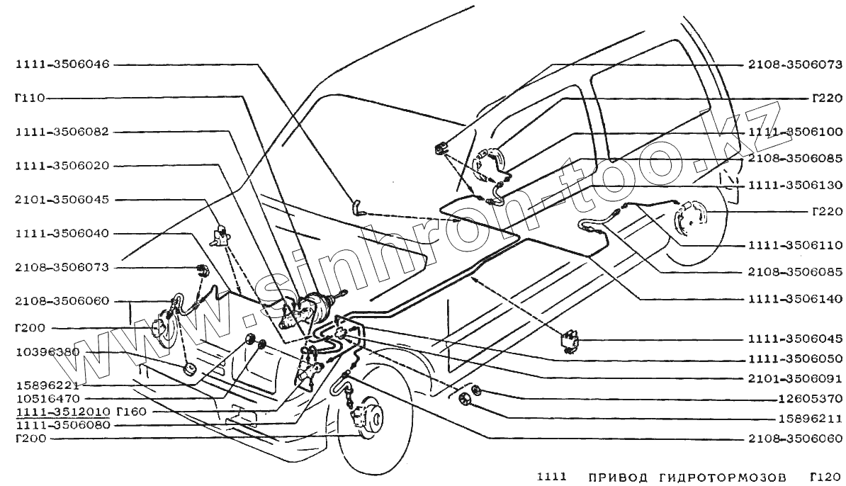 Каталог запасных частей к технике: ВАЗ-1111 "ОКА". Привод гидротормозов