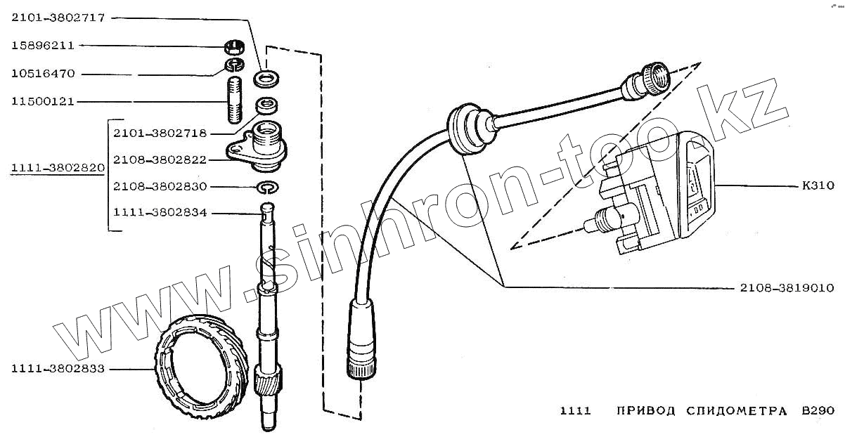 Каталог запасных частей к технике: ВАЗ-1111 "ОКА". Привод спидометра