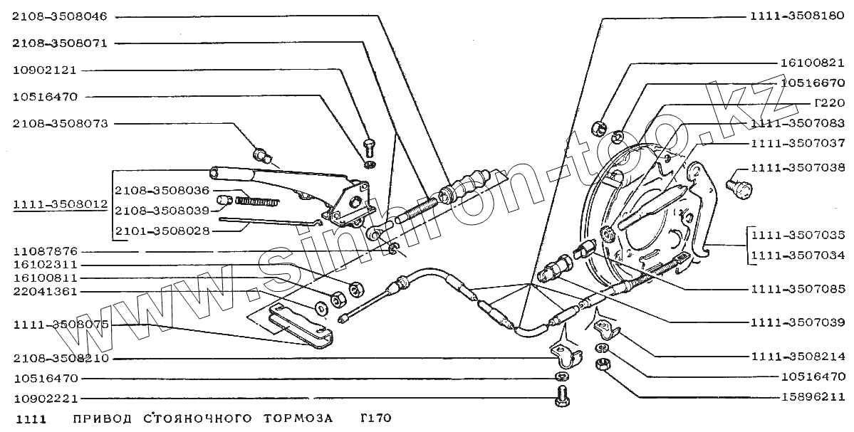 Каталог запасных частей к технике: ВАЗ-1111 "ОКА". Привод стояночного тормоза