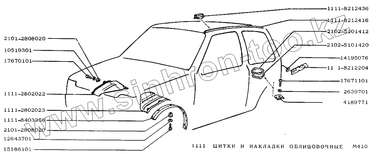 Каталог запасных частей к технике: ВАЗ-1111 "ОКА". Щитки и накладки облицовочные