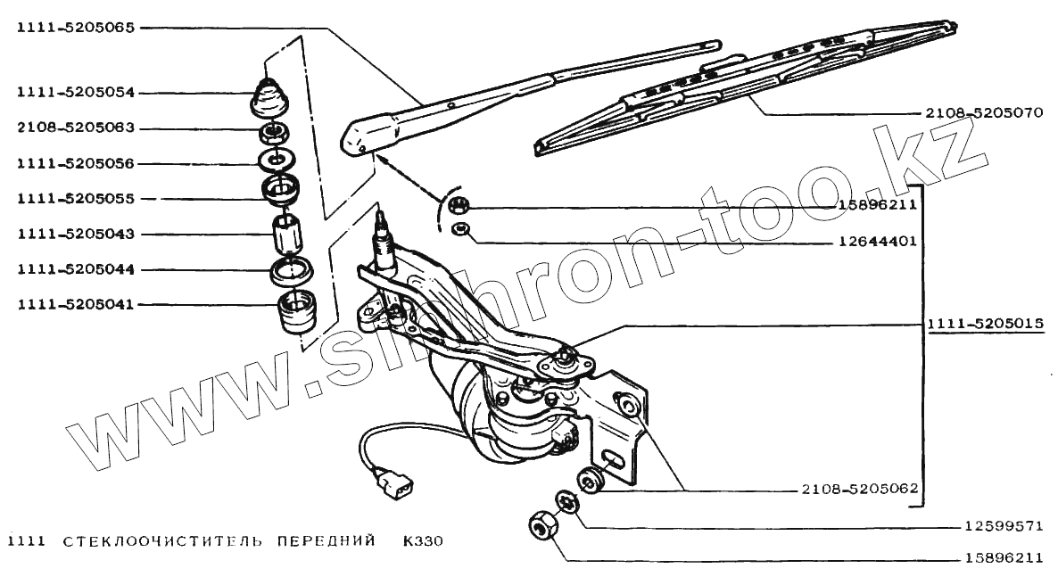 Каталог запасных частей к технике: ВАЗ-1111 "ОКА". Стеклоочиститель передний