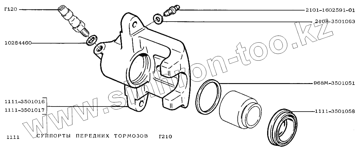Каталог запасных частей к технике: ВАЗ-1111 "ОКА". Суппорты передних тормозов