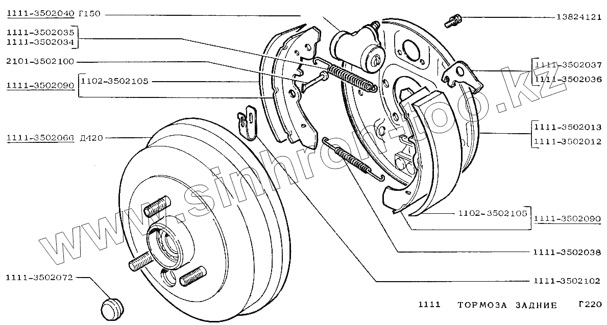 Каталог запасных частей к технике: ВАЗ-1111 "ОКА". Тормоза задние