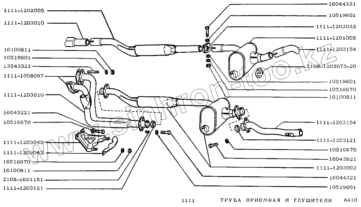 Каталог запасных частей к технике: ВАЗ-1111 "ОКА". Труба приемная и глушители