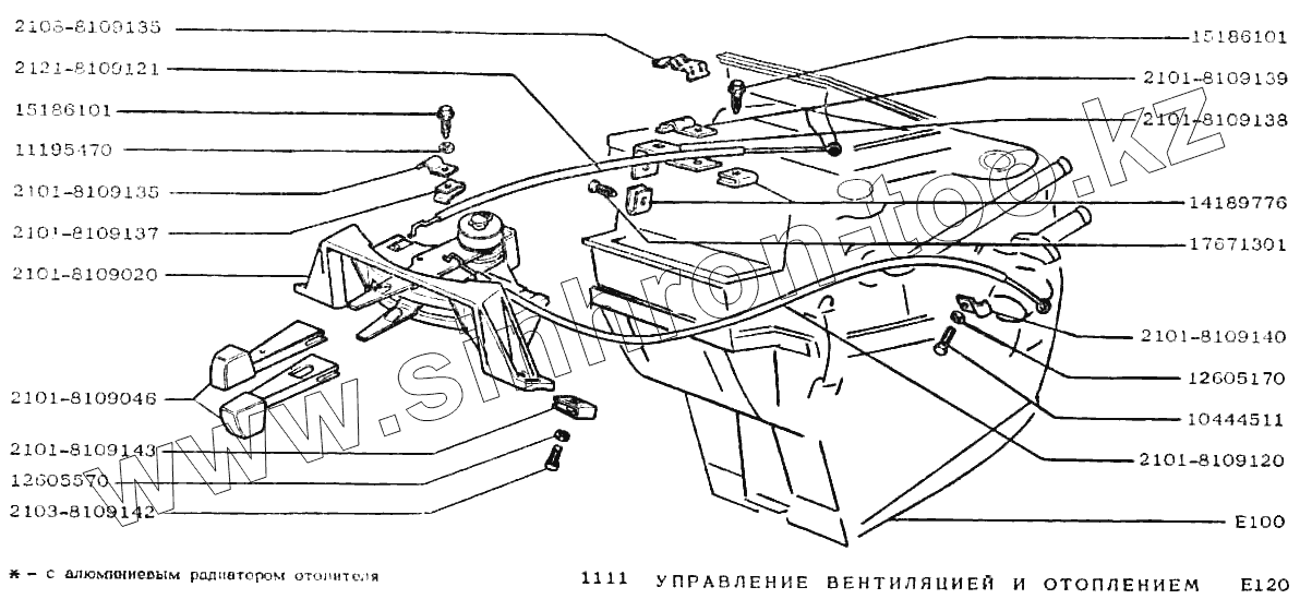 Каталог запасных частей к технике: ВАЗ-1111 "ОКА". Управление вентиляцией и отоплением