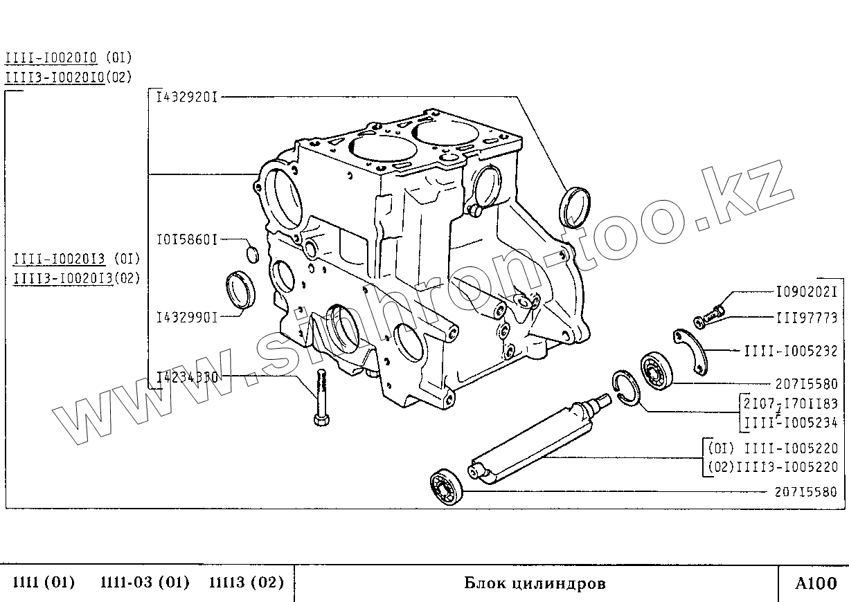 Каталог запасных частей к технике: ВАЗ-1111 (ОКА). Блок цилиндров