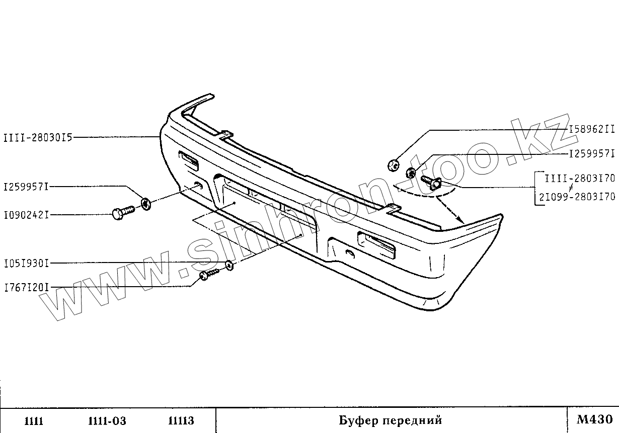Каталог запасных частей к технике: ВАЗ-1111 (ОКА). Буфер передний