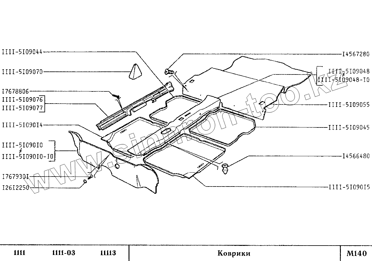 Каталог запасных частей к технике: ВАЗ-1111 (ОКА). Коврики