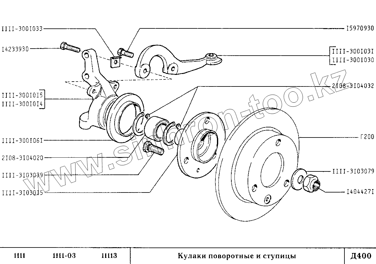 Каталог запасных частей к технике: ВАЗ-1111 (ОКА). Кулаки поворотные и ступицы