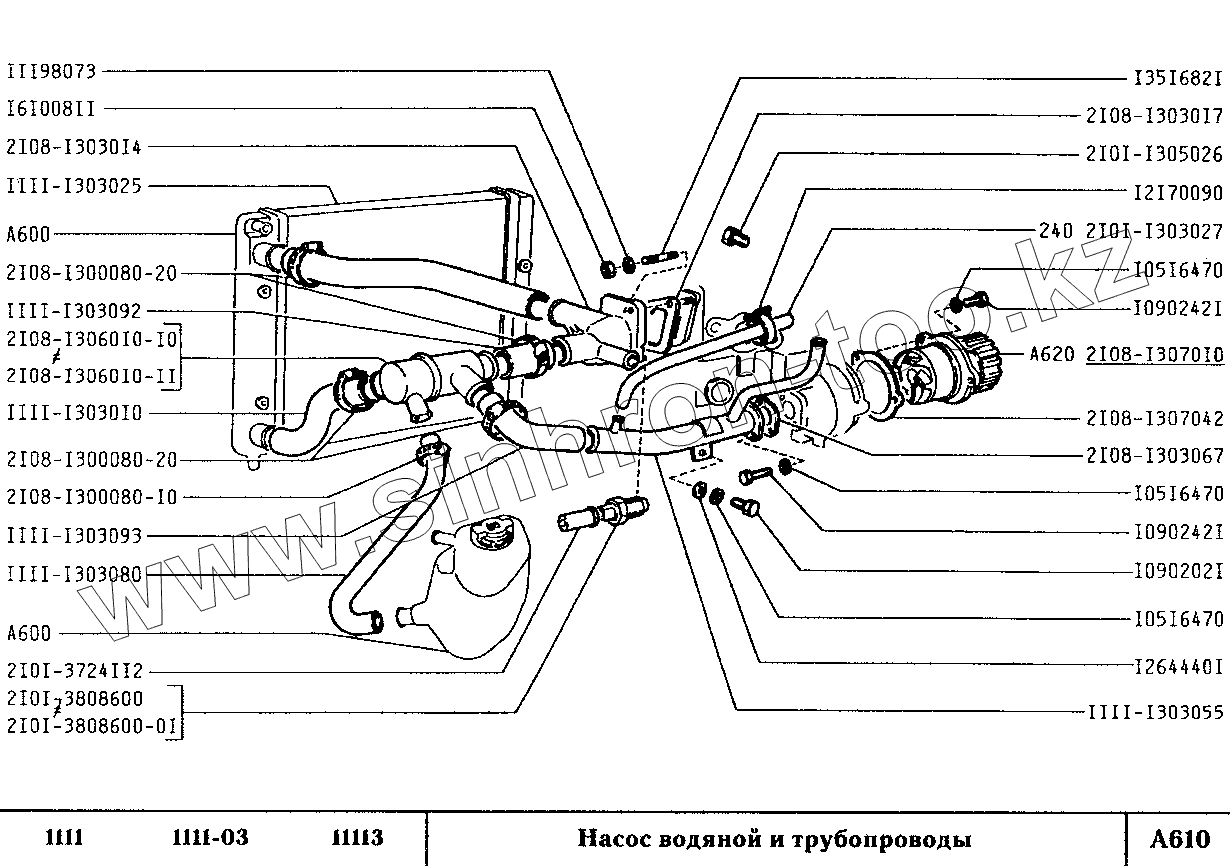Каталог запасных частей к технике: ВАЗ-1111 (ОКА). Насос водяной и трубопроводы