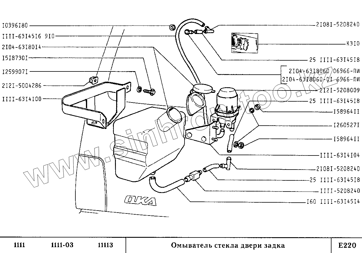 Каталог запасных частей к технике: ВАЗ-1111 (ОКА). Омыватель стекла двери задка