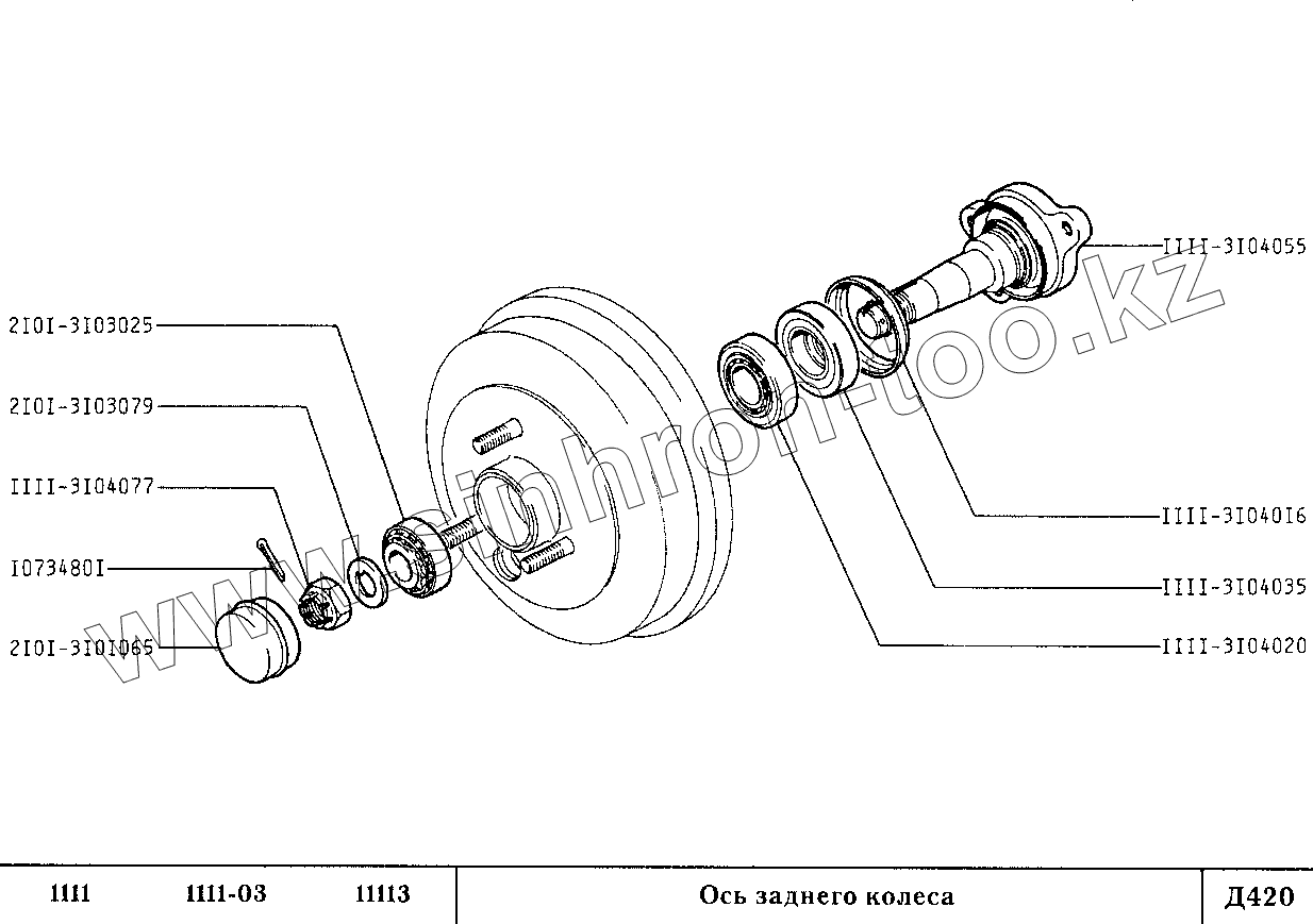 Каталог запасных частей к технике: ВАЗ-1111 (ОКА). Ось заднего колеса