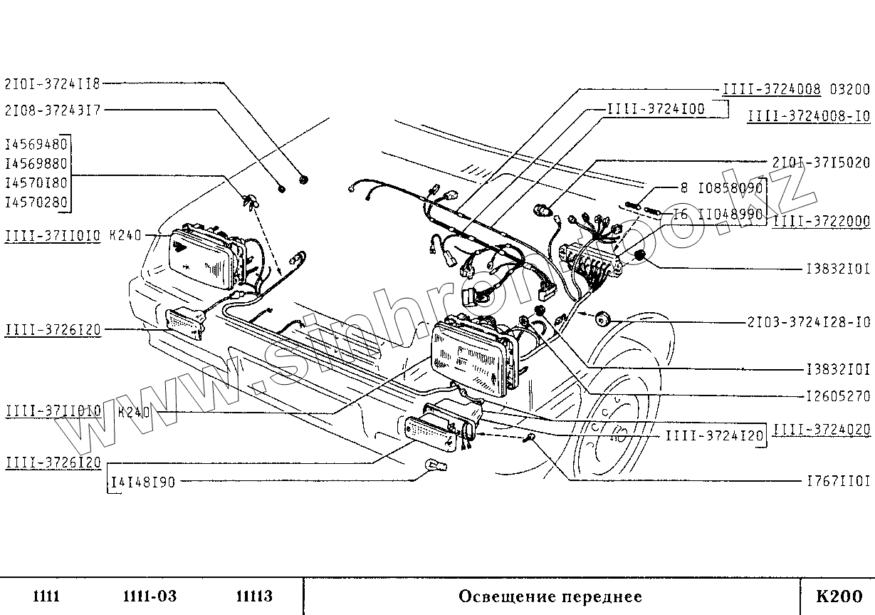 Каталог запасных частей к технике: ВАЗ-1111 (ОКА). Освещение переднее