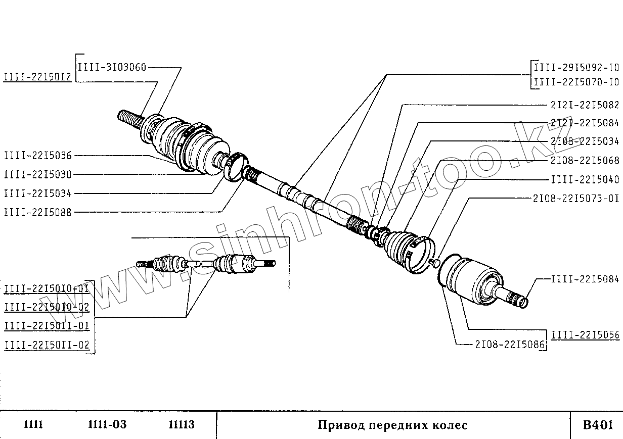 Каталог запасных частей к технике: ВАЗ-1111 (ОКА). Привод передних колес