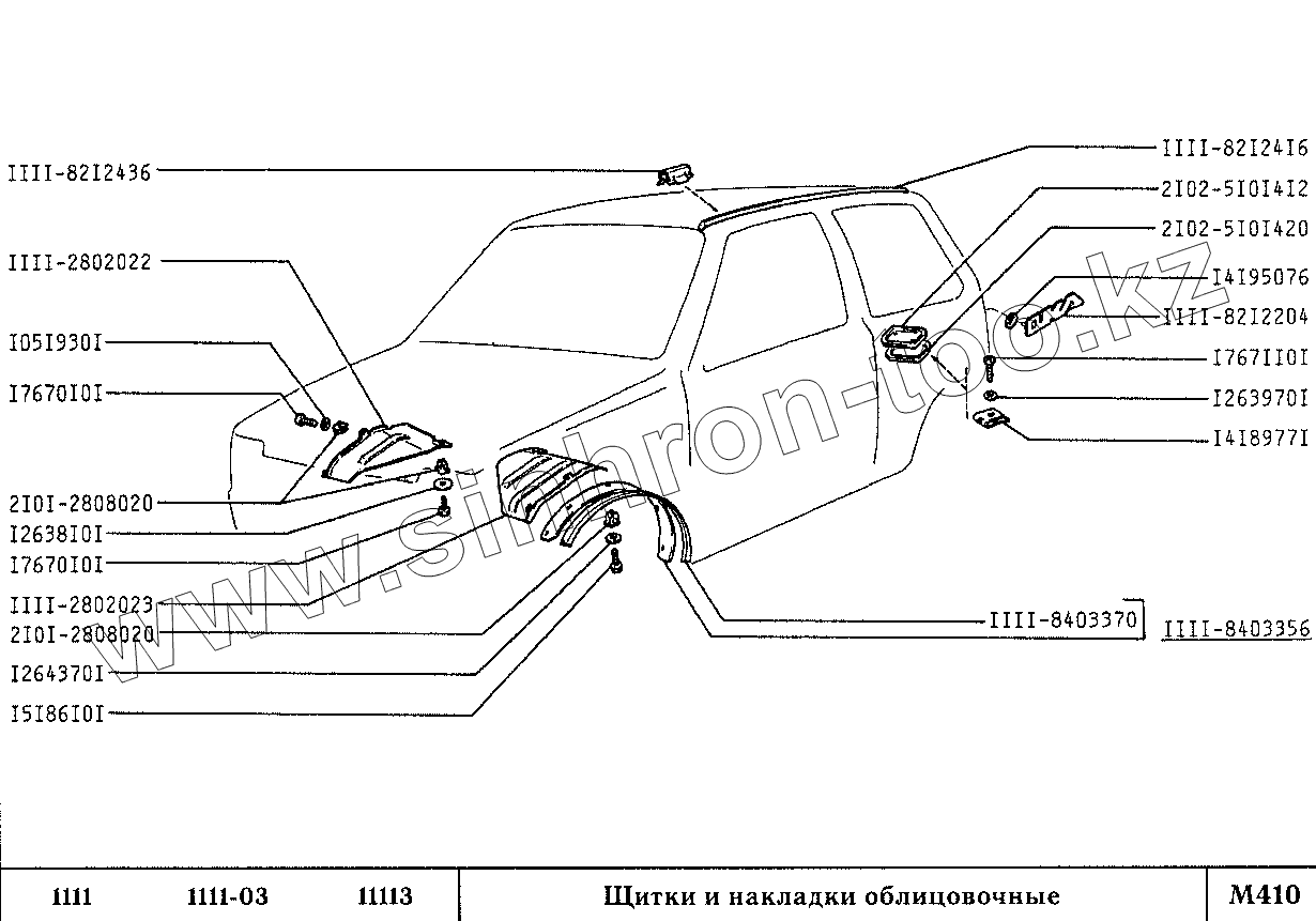 Каталог запасных частей к технике: ВАЗ-1111 (ОКА). Щитки и накладки облицовочные